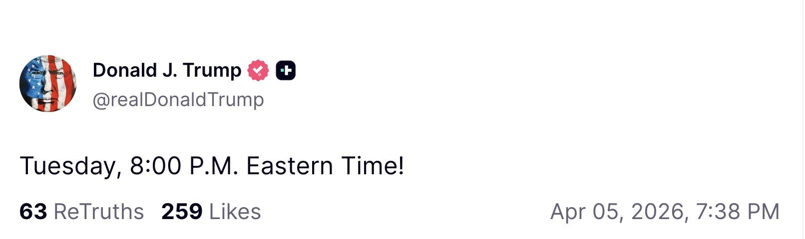 Позже в соцсетях он уточнил, что у Ирана время до 20:00 вторника по восточному времени (по Киеву это до 3 часов ночи среды 8 апреля).